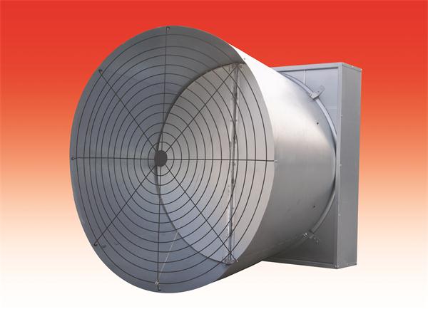 喇叭口風機是在50′標準風機的基礎上衍生開發(fā)的具有更強功效的風機。帶攏風筒的設計能增大禽/豬舍負壓,